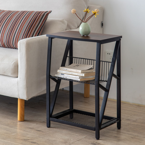 OSCHF Industrial Vintage Side Table - 3-Tier Sofa End Table with Mesh Shelf Metal Fence Bookshelf for Living Room