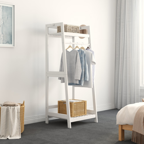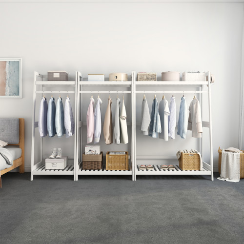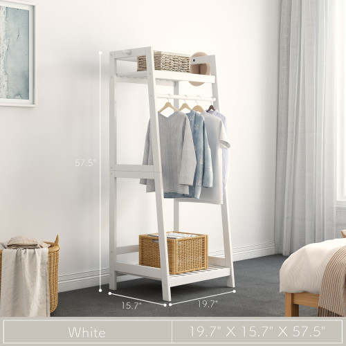 ANFYI White Solid Wood Open Wood Garment Rack with Storage Shelf and Rod