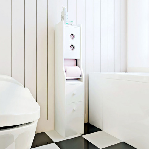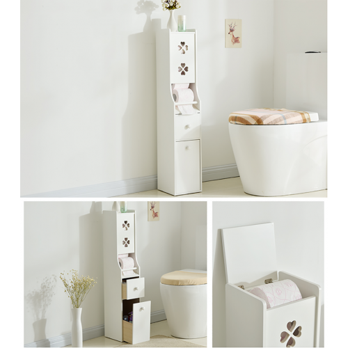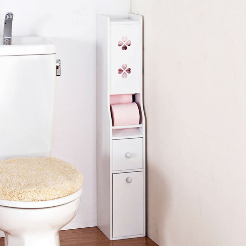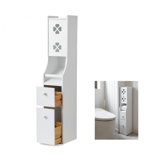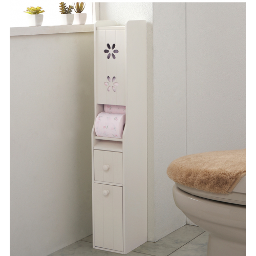 This bathroom floor storage cabinet is made up of natural paulownia wood. The unusually narrow height design lets it be placed near the toilet or corner.