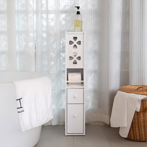 SIZE: 7.1"L x 7.9"W x 36.6"H, This storage cabinet's narrow-height design style makes it easy to take the paper near the toilet.