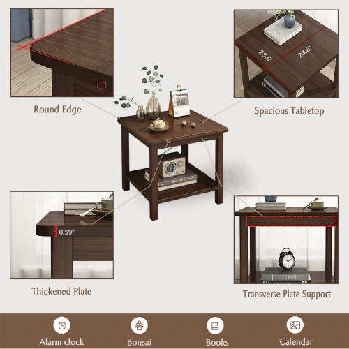 AEONLEAF 2-Tier Wooden Side Table - Square Sofa End Table with Storage Shelf and Solid Wood Legs for Living Room