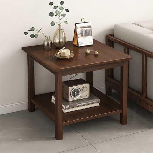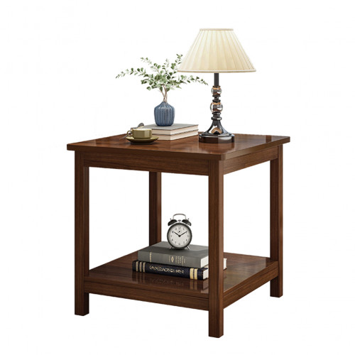 This 2-tier wood side table comprises solid wood legs, and the MDF top presents the American country style.