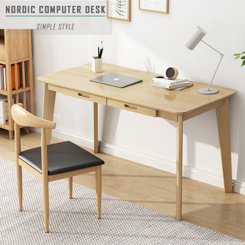 This Solid Wood Writing Desk is manufactured from a solid wood frame and beechwood legs with an MDF desktop, presenting a nordic simple style, beautiful, stable, and durable.