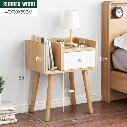 This nightstand with storage drawer and open bookshelf for bedroom.