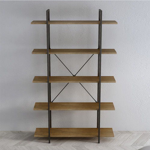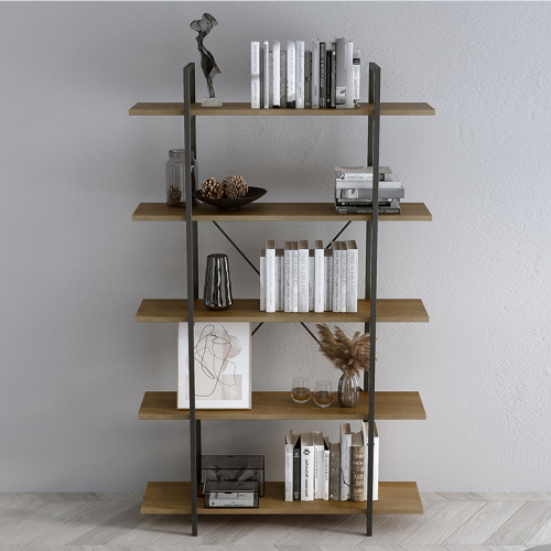 HMCOZY 5-Tier Rustic Industrial Style Open Bookcase with Metal Frame and Wood Shelves